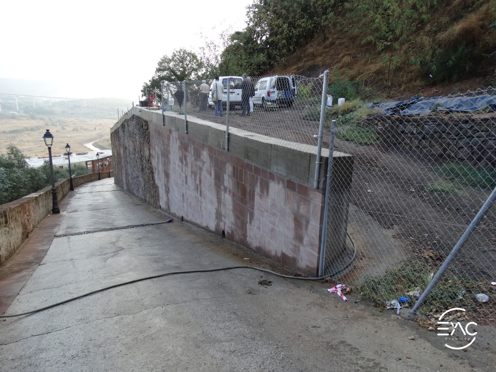 Medidas correctoras a los problemas de estabilidad consistentes en actuaciones tendentes a la mejora de la estabilidad de los muros mediante inyección de mezclas estables de cemento-bentonita, ejecución de anclajes y drenaje, disminuyéndose los empujes que reciben dichos muros, haciéndolos adecuados para la conservación de estas estructuras con el mantenimiento oportuno.