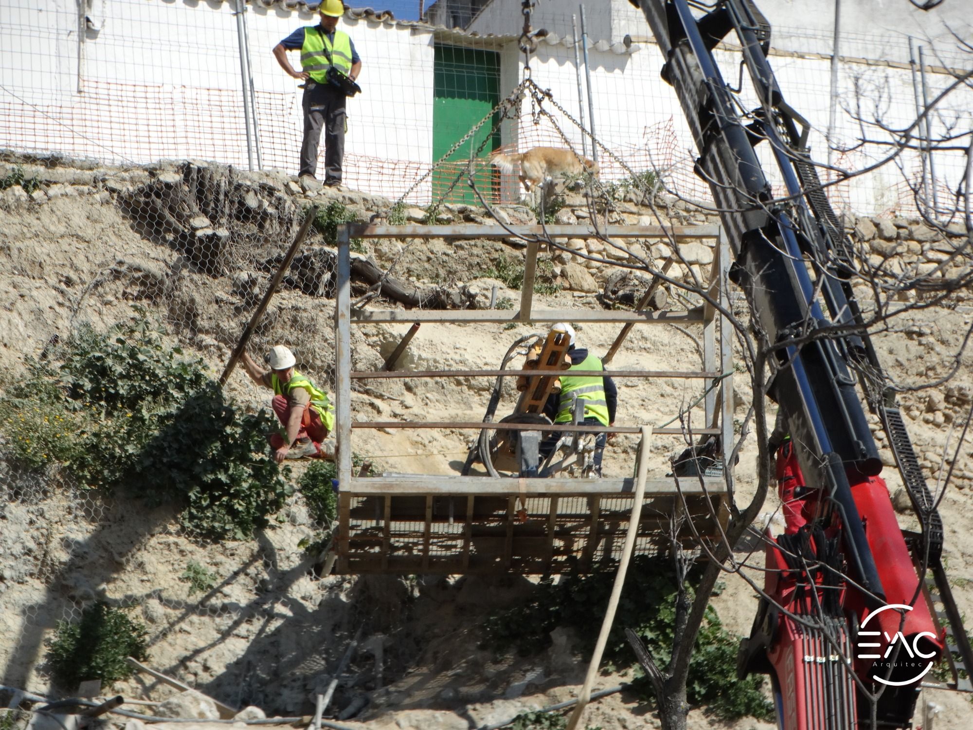 Actuación con el único objetivo de estabilizar la zona denominada, ladera de la Villa de Cabra (Córdoba), cuyas viviendas y tramos de muralla están afectadas. El proyecto nace tras unas primeras medidas de emergencia iniciales puesta en marcha por otro equipo técnico diferente, y complementa, modificando la propuesta de intervención existente.